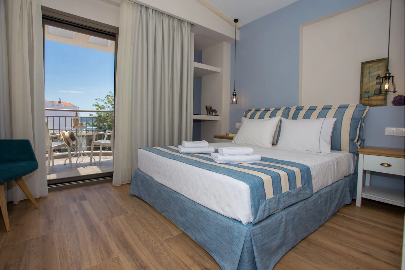 Our apartments with great views to the North Aegean Sea exude charm and character. From the cozy interiors adorned with traditional Greek decor to the serene outdoor spaces, every corner of our apartments reflects the beauty and tranquility of the Mediterranean.